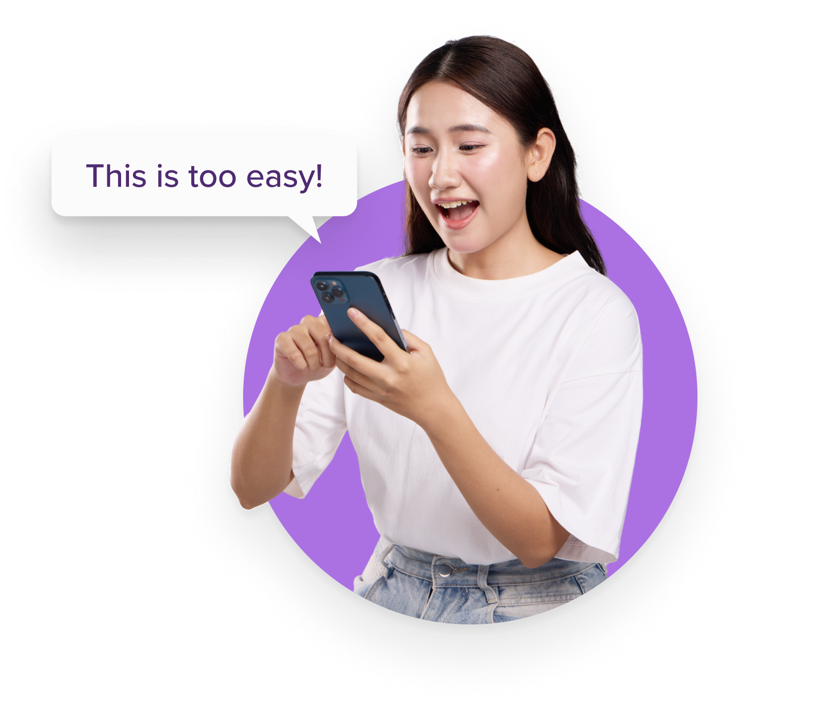 Apply in under 30 seconds using Singpass or our simple multi-step form. It’s quick, secure and hassle-free.